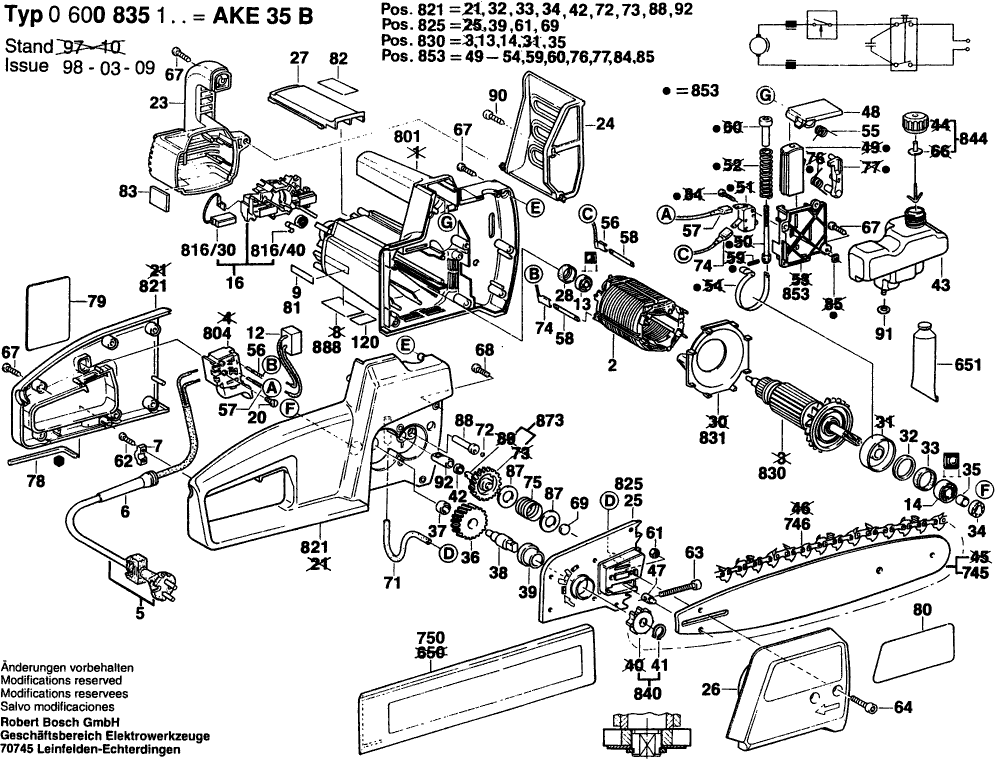 Spare parts list of model Bosch 0600835103 ( AKE35B )