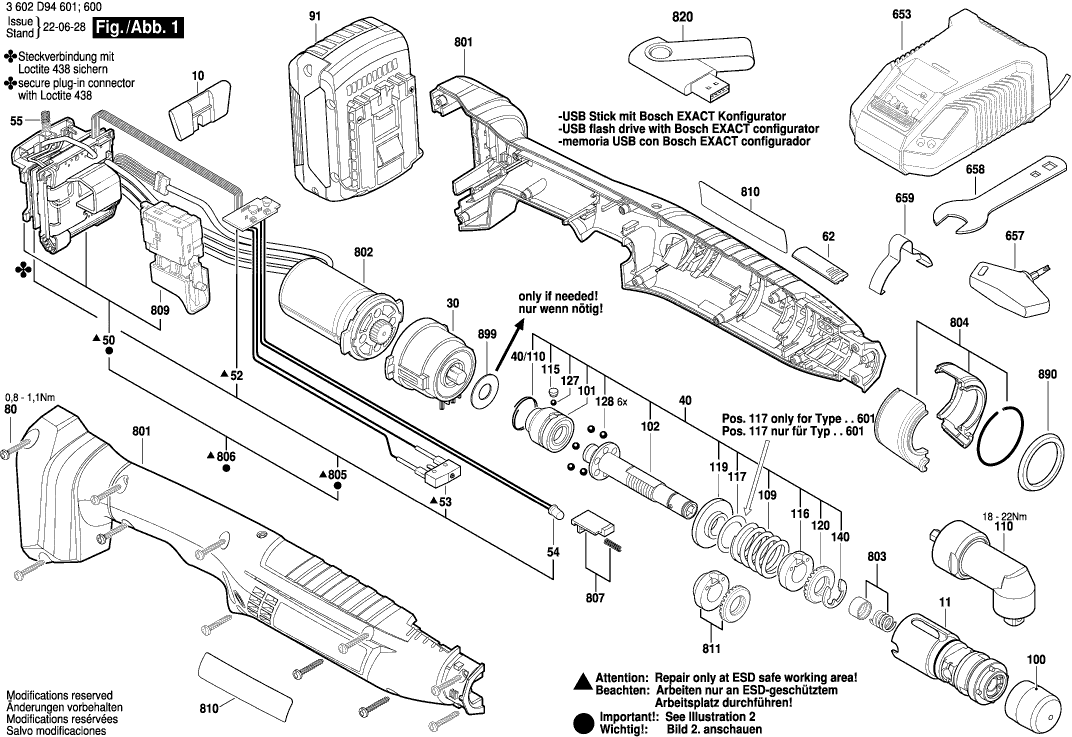 Here you will find all available parts and drawings of the 'Bosch 3602D94601 ( ANGLEEXACTION15-500 )'. From here you can order all desired parts directly. Many parts must be ordered from the manufacturer, depending on the brand, this takes one to four weeks. All the information we have is on our website, we cannot advise you on what you need, for that you will need to return the machine for repair. Please note the following when ordering: