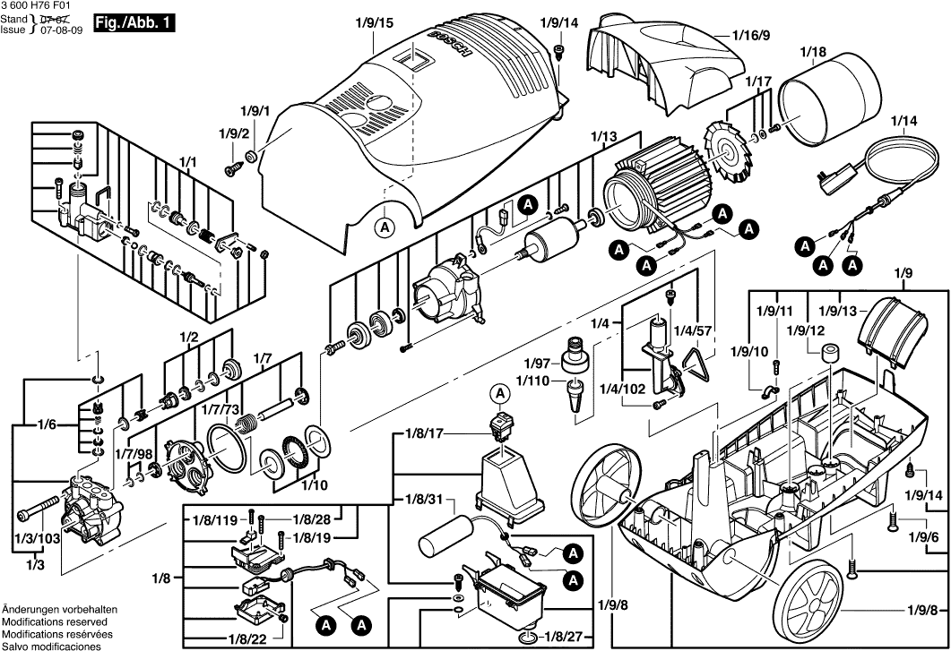 Here you will find all available parts and drawings of the 'Bosch 3600H76F01 ( AQUATAK1200PLUS )'. From here you can order all desired parts directly. Many parts must be ordered from the manufacturer, depending on the brand, this takes one to four weeks. All the information we have is on our website, we cannot advise you on what you need, for that you will need to return the machine for repair. Please note the following when ordering: