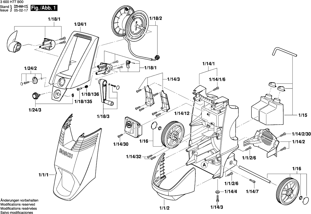 Here you will find all available parts and drawings of the 'Bosch 3600H77B00 ( AQUATAK150PROX )'. From here you can order all desired parts directly. Many parts must be ordered from the manufacturer, depending on the brand, this takes one to four weeks. All the information we have is on our website, we cannot advise you on what you need, for that you will need to return the machine for repair. Please note the following when ordering: