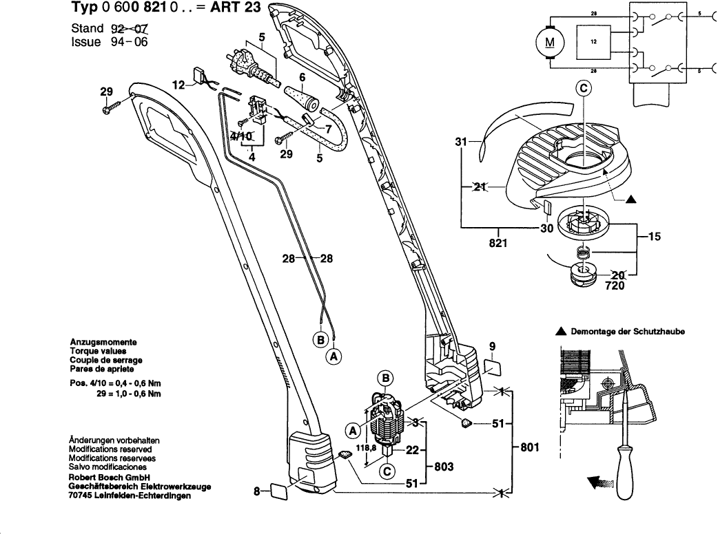 Spare parts list of model Bosch 0600821003 ( ART23 )