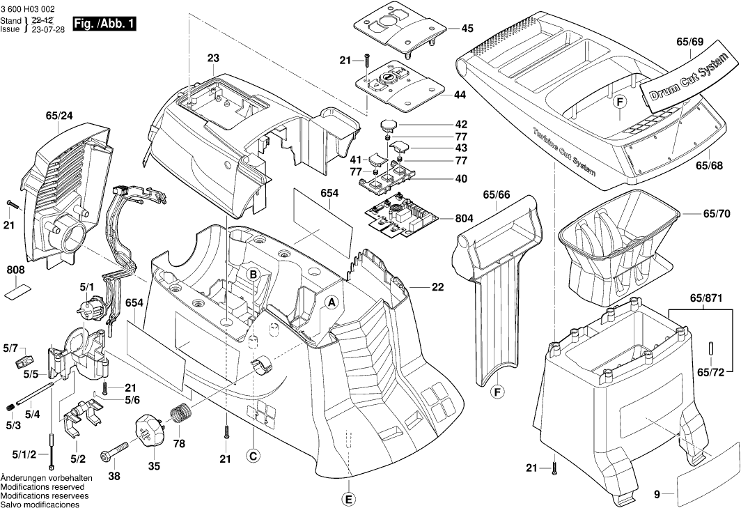 Technical drawing of model Bosch 3600H03002 ( AXT22D )