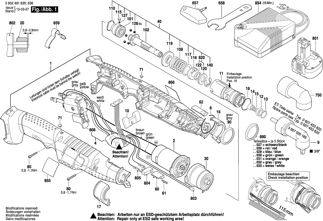 Spare parts list of model Bosch 0602491635 ( BTANGLEEXACT15 )