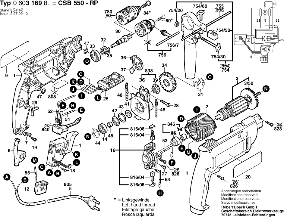 Spare parts list of model Bosch 0603169870 ( CSB550RP )