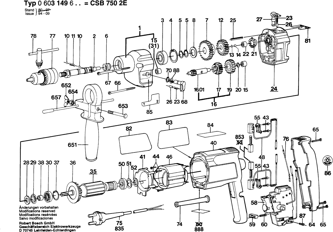 Spare parts list of model Bosch 0603149603 ( CSB750-2E )