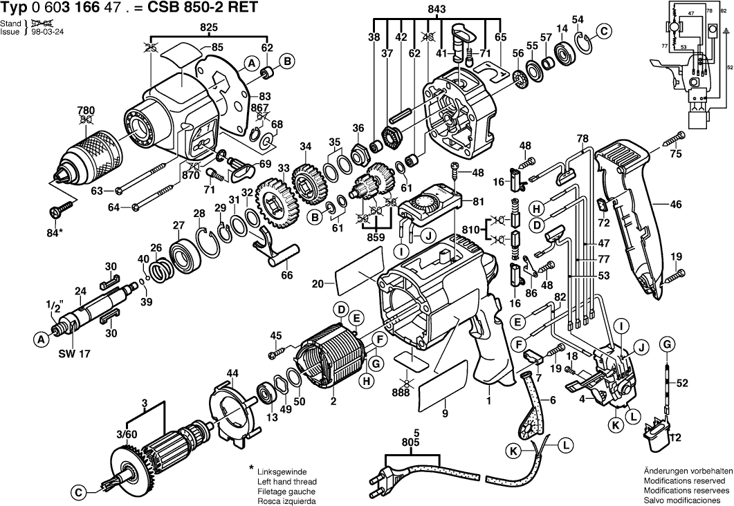 Spare parts list of model Bosch 0603166480 ( CSB850-2RET )