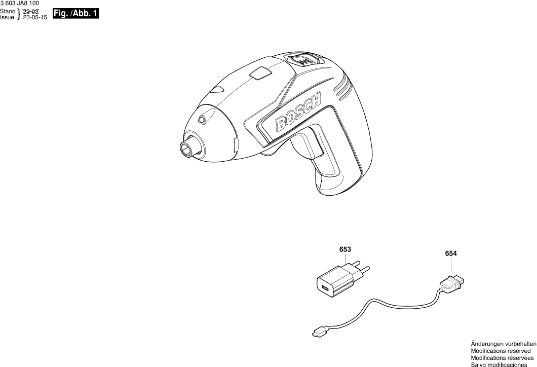 Technical drawing of model Bosch 3603JA8100 ( EASYSCREWDRIVE )