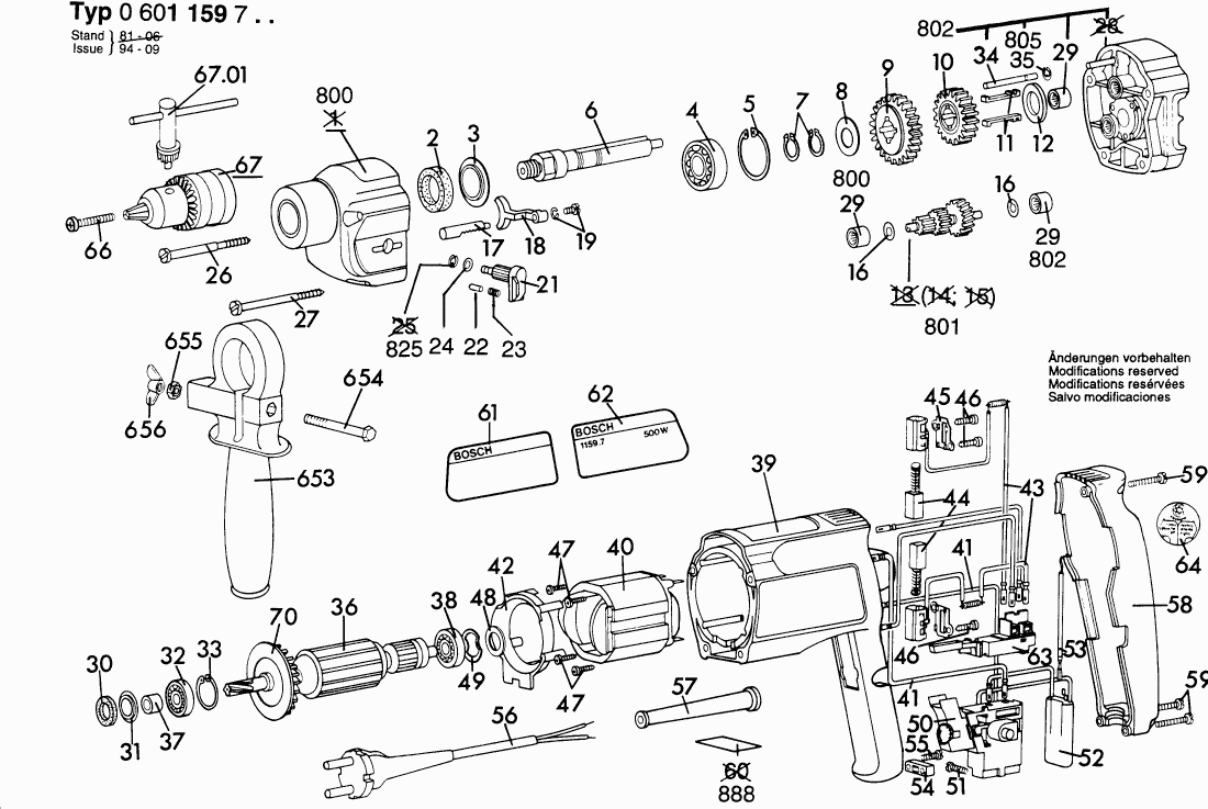 Spare parts list of model Bosch 0601159703 ( ELECTRONICR/L )