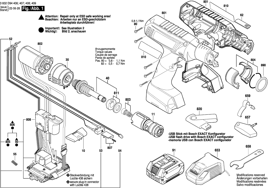 Here you will find all available parts and drawings of the 'Bosch 3602D94408 ( EXACTION12-700WK )'. From here you can order all desired parts directly. Many parts must be ordered from the manufacturer, depending on the brand, this takes one to four weeks. All the information we have is on our website, we cannot advise you on what you need, for that you will need to return the machine for repair. Please note the following when ordering: