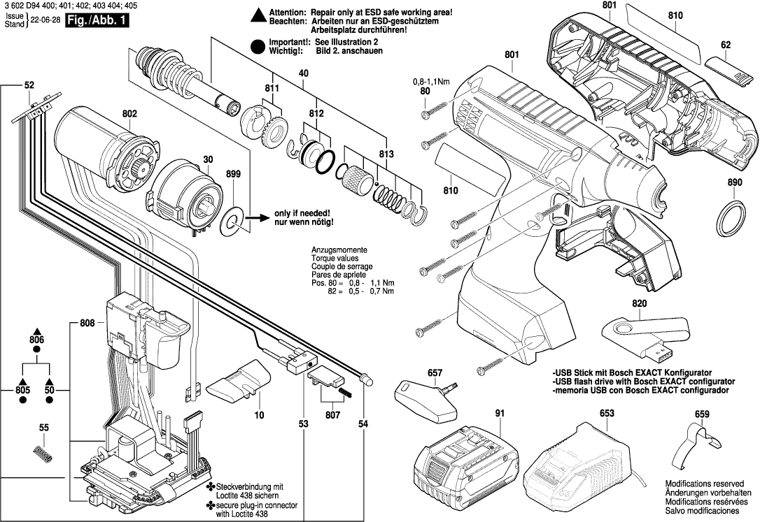 Technical drawing of model Bosch 3602D94400 ( EXACTION2-700 )