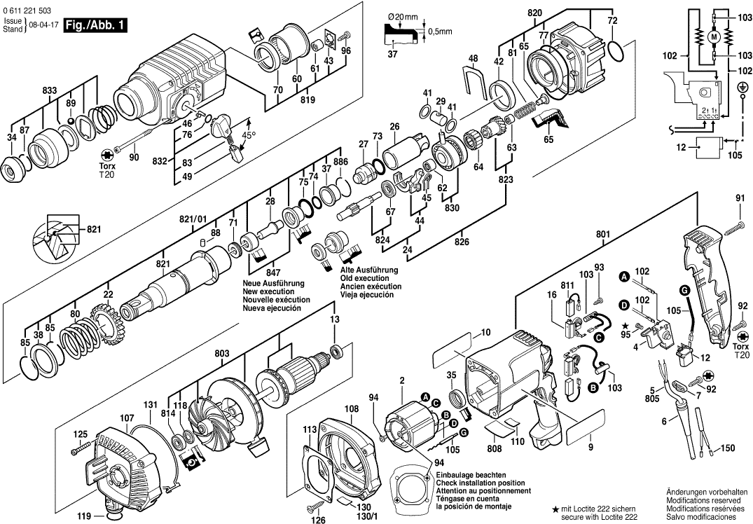 Technical drawing of model Bosch 0611221503 ( GAH500DSE )