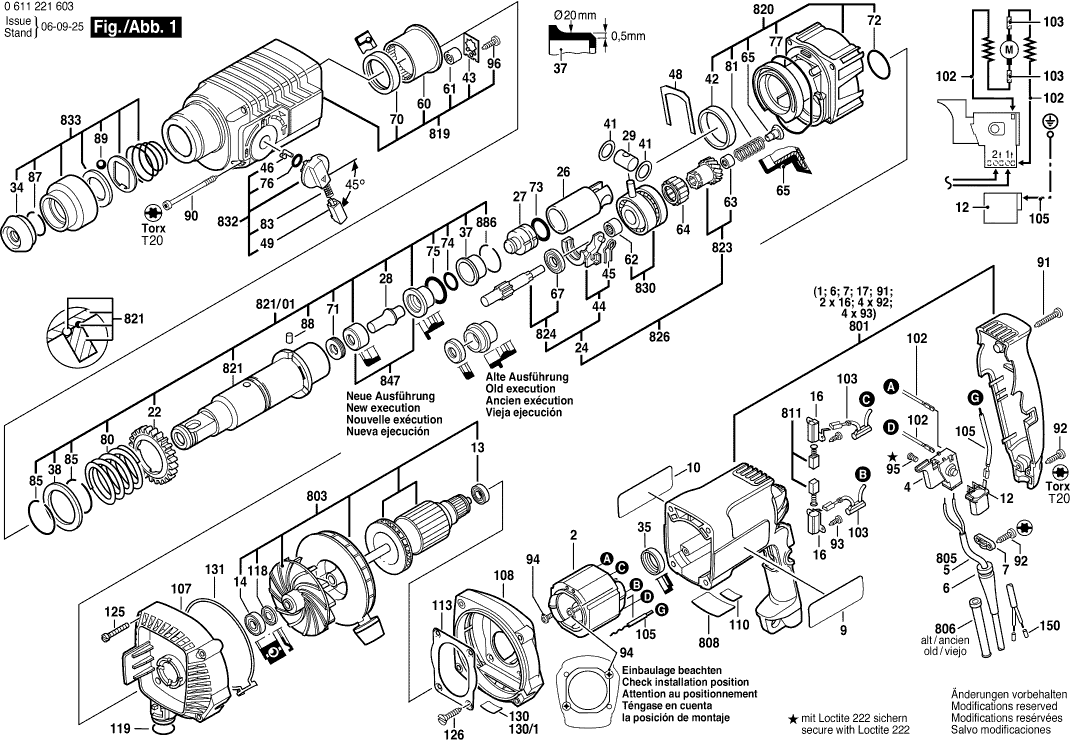 Technical drawing of model Bosch 0611221603 ( GAH500DSE )