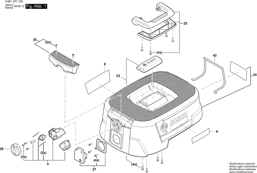 Here you will find all available parts and drawings of the 'Bosch 3601J7C100 ( GAS12-25PL )'. From here you can order all desired parts directly. Many parts must be ordered from the manufacturer, depending on the brand, this takes one to four weeks. All the information we have is on our website, we cannot advise you on what you need, for that you will need to return the machine for repair. Please note the following when ordering:
