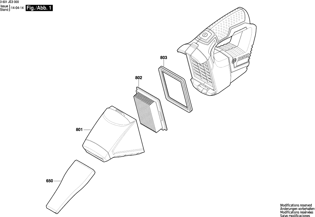 Technical drawing of model Bosch 3601JE3001 ( GAS12V )