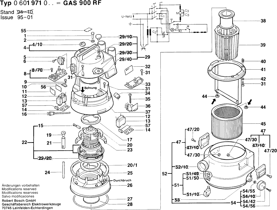 Here you will find all available parts and drawings of the 'Bosch 0601971003 ( GAS900RF )'. From here you can order all desired parts directly. Many parts must be ordered from the manufacturer, depending on the brand, this takes one to four weeks. All the information we have is on our website, we cannot advise you on what you need, for that you will need to return the machine for repair. Please note the following when ordering: