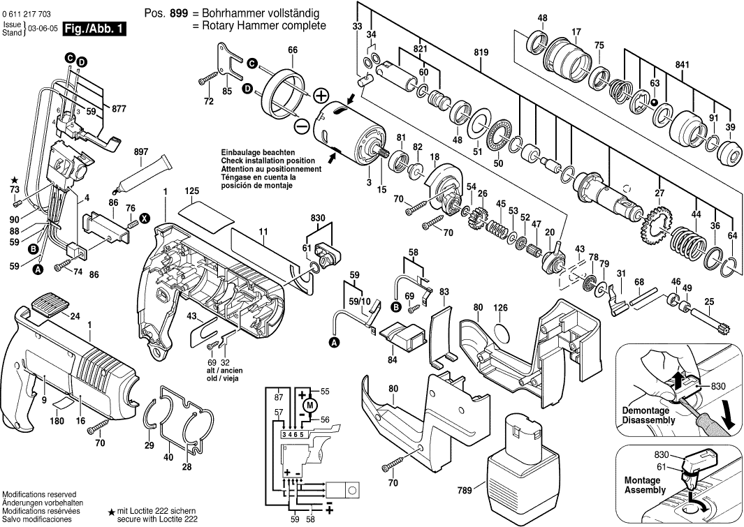 Spare parts list of model Bosch 0611217783 ( GBH12VRE )