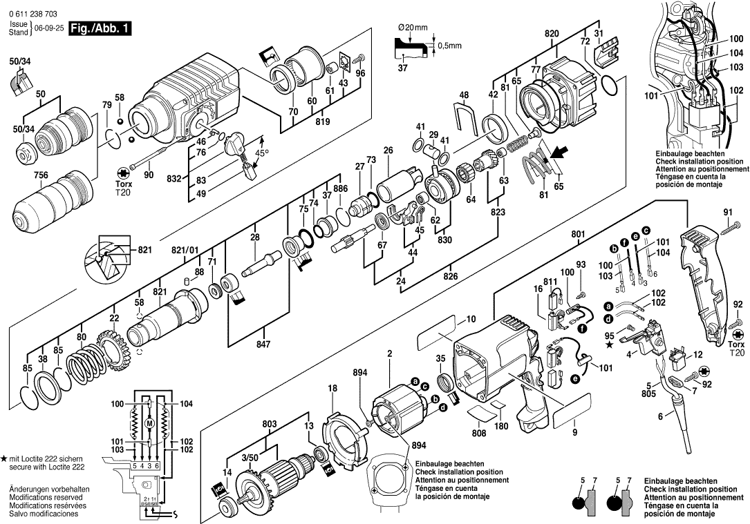 Spare parts list of model Bosch 0611238708 ( GBH2-24DFR )
