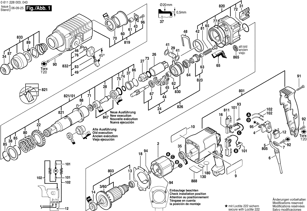Spare parts list of model Bosch 0611228003 ( GBH2-24DS )