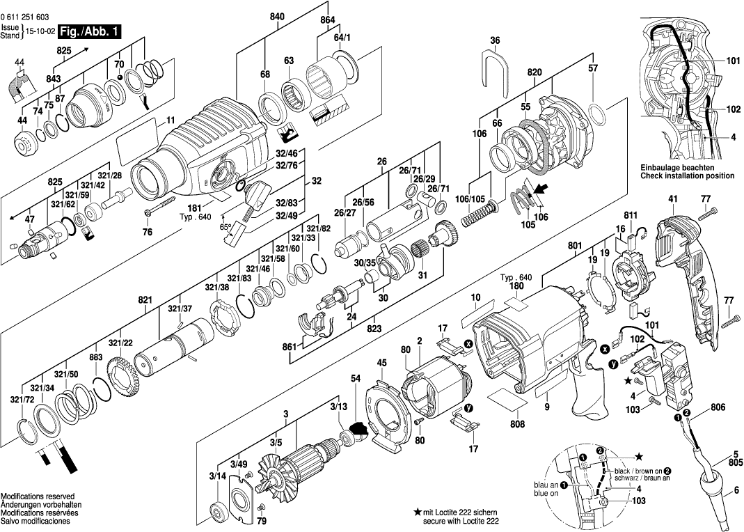 Spare parts list of model Bosch 0611251603 ( GBH2-26E )