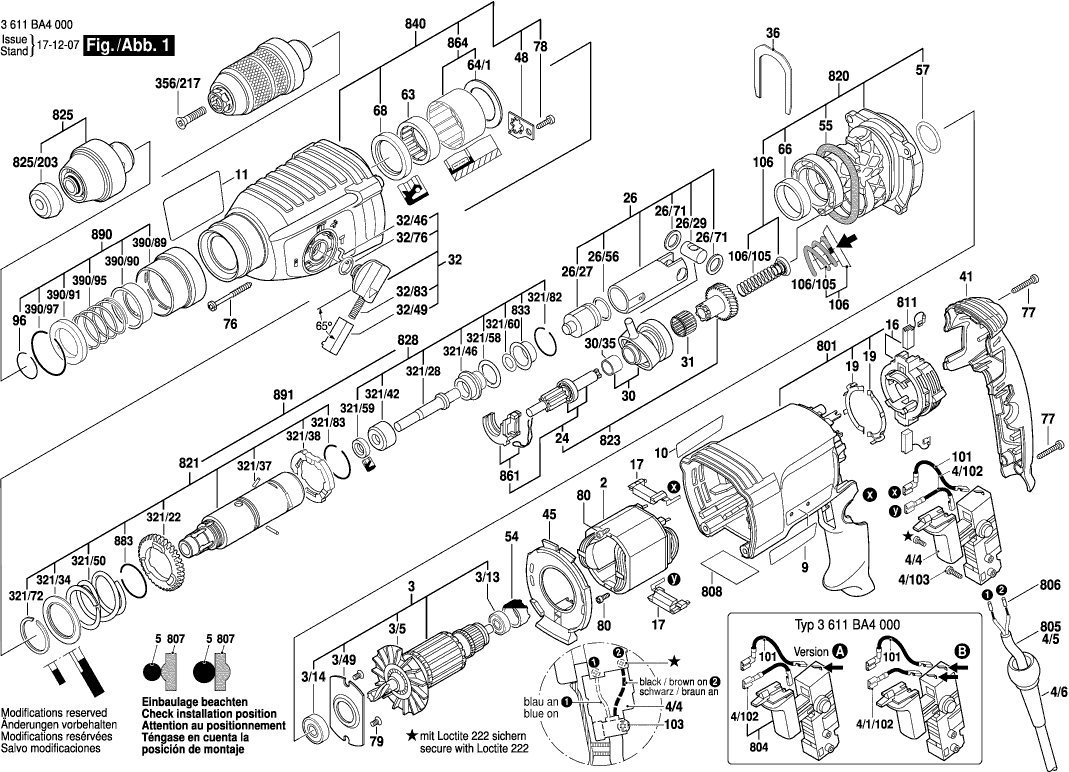 Here you will find all available parts and drawings of the 'Bosch 3611BA4000 ( GBH2-26F )'. From here you can order all desired parts directly. Many parts must be ordered from the manufacturer, depending on the brand, this takes one to four weeks. All the information we have is on our website, we cannot advise you on what you need, for that you will need to return the machine for repair. Please note the following when ordering: