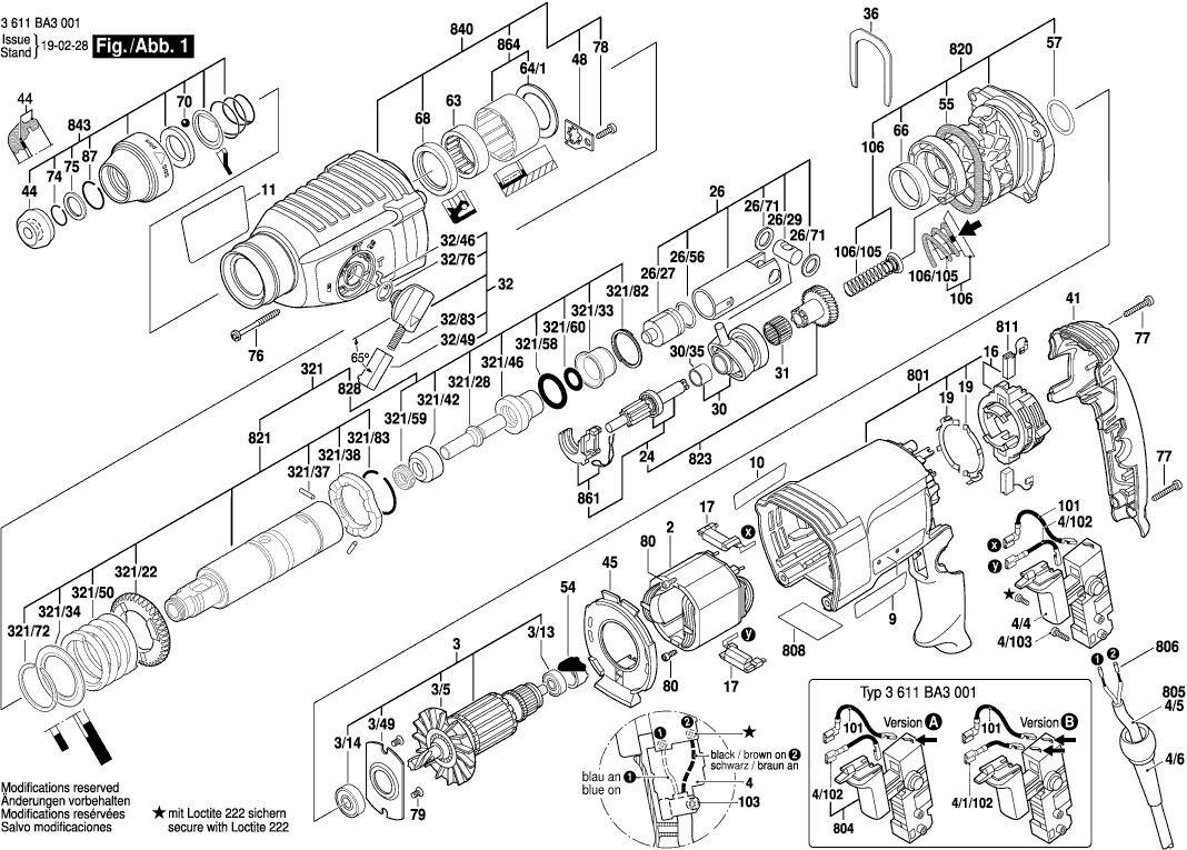 Spare parts list of model Bosch 3611BA3001 ( GBH2-26 )