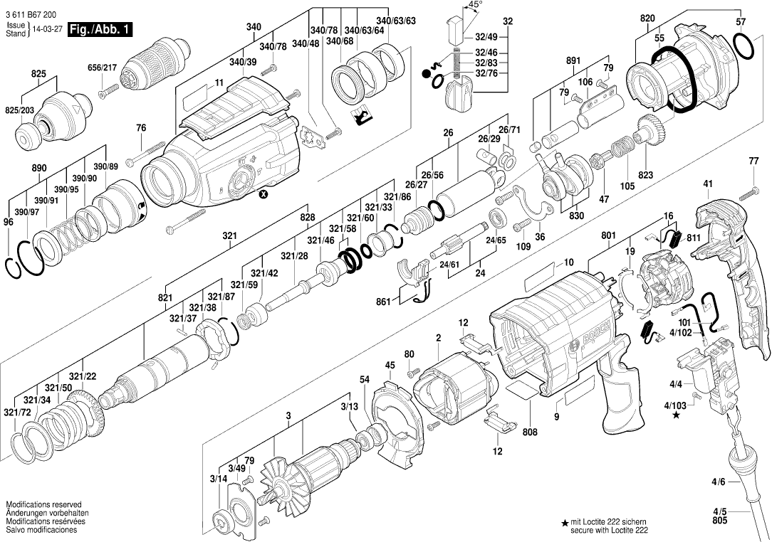 Here you will find all available parts and drawings of the 'Bosch 3611B67200 ( GBH2-28DFV )'. From here you can order all desired parts directly. Many parts must be ordered from the manufacturer, depending on the brand, this takes one to four weeks. All the information we have is on our website, we cannot advise you on what you need, for that you will need to return the machine for repair. Please note the following when ordering: