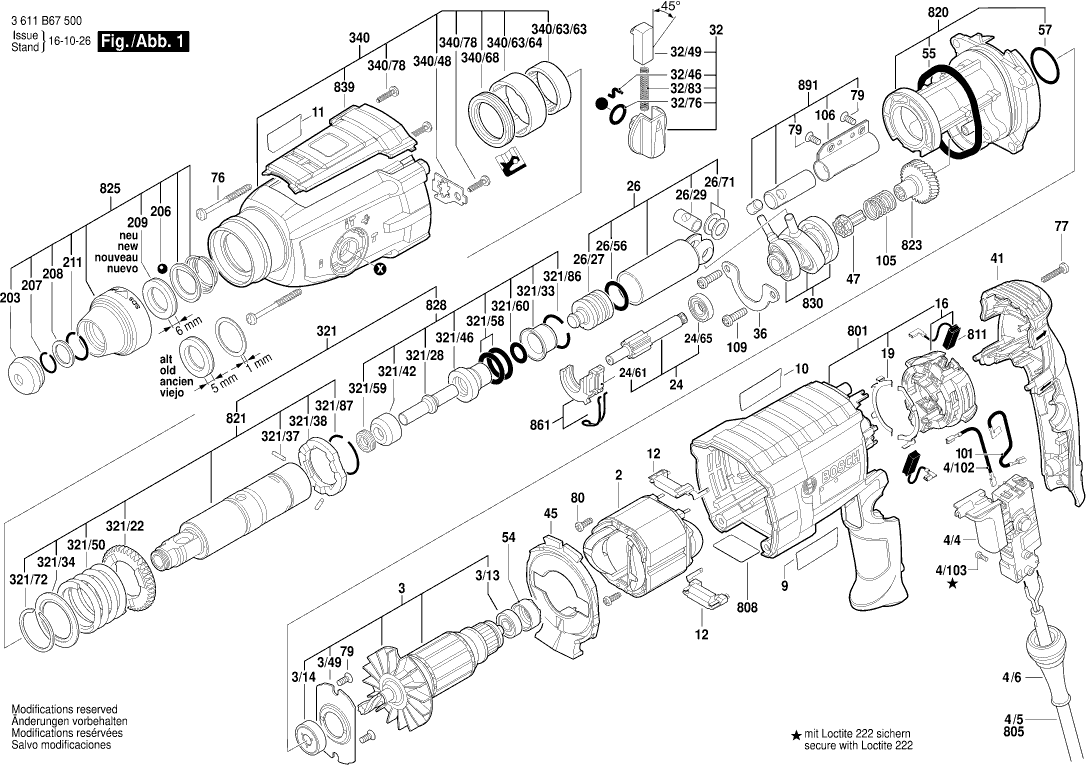 Technical drawing of model Bosch 3611B67500 ( GBH2-28 )