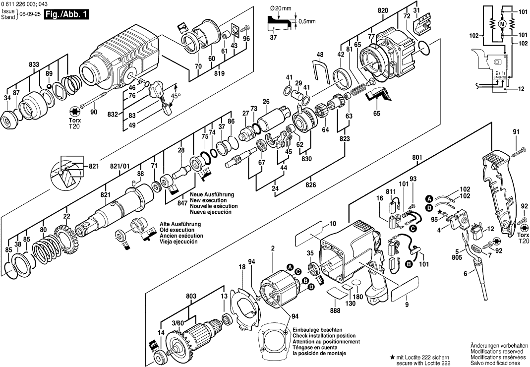 Technical drawing of model Bosch 0611226003 ( GBH2S )