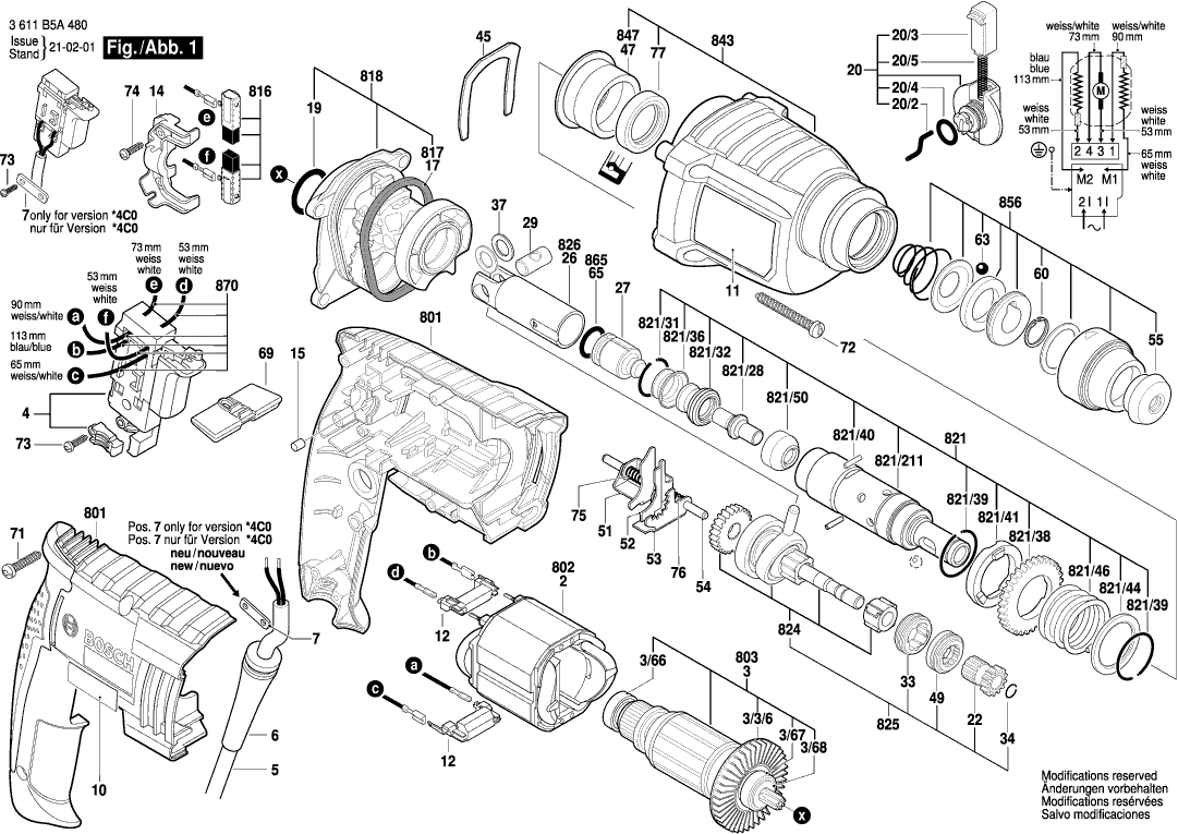 Spare parts list of model Bosch 3611B5A487 ( GBH2000DRE )