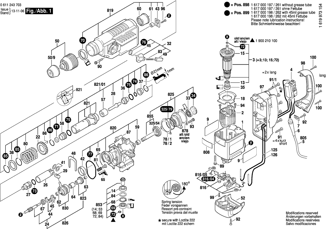 Spare parts list of model Bosch 0611243708 ( GBH4-TOP )