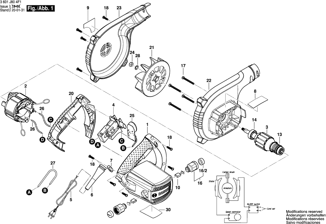 Here you will find all available parts and drawings of the 'Bosch 3601J804P4 ( GBL800E )'. From here you can order all desired parts directly. Many parts must be ordered from the manufacturer, depending on the brand, this takes one to four weeks. All the information we have is on our website, we cannot advise you on what you need, for that you will need to return the machine for repair. Please note the following when ordering: