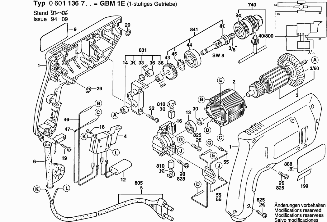Here you will find all available parts and drawings of the 'Bosch 0601136703 ( GBM1E )'. From here you can order all desired parts directly. Many parts must be ordered from the manufacturer, depending on the brand, this takes one to four weeks. All the information we have is on our website, we cannot advise you on what you need, for that you will need to return the machine for repair. Please note the following when ordering: