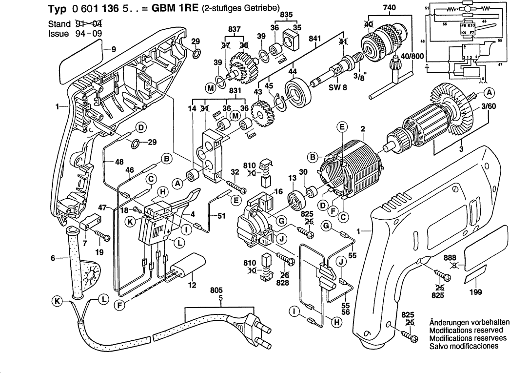 Spare parts list of model Bosch 0601136565 ( GBM1RE )
