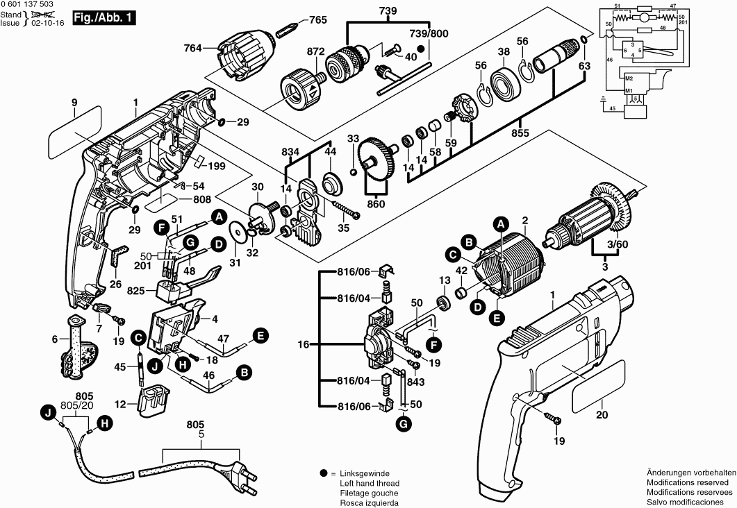 Spare parts list of model Bosch 0601137503 ( GBM10SRE )