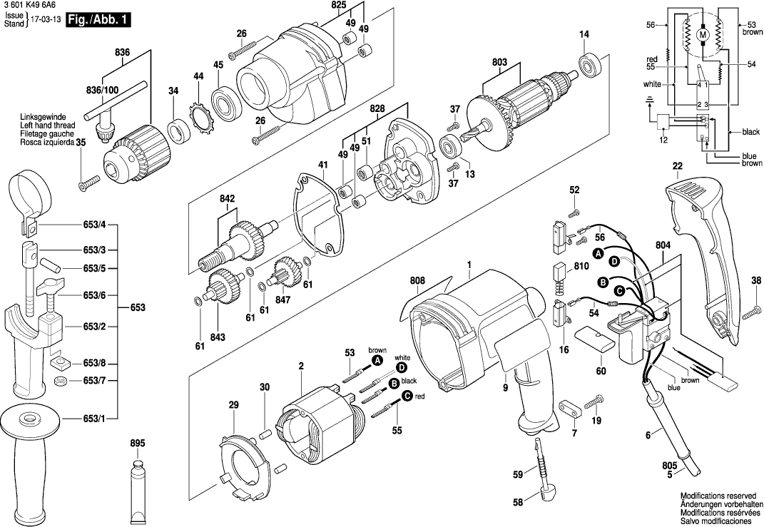 Spare parts list of model Bosch 3601K496A6 ( GBM13HRE )