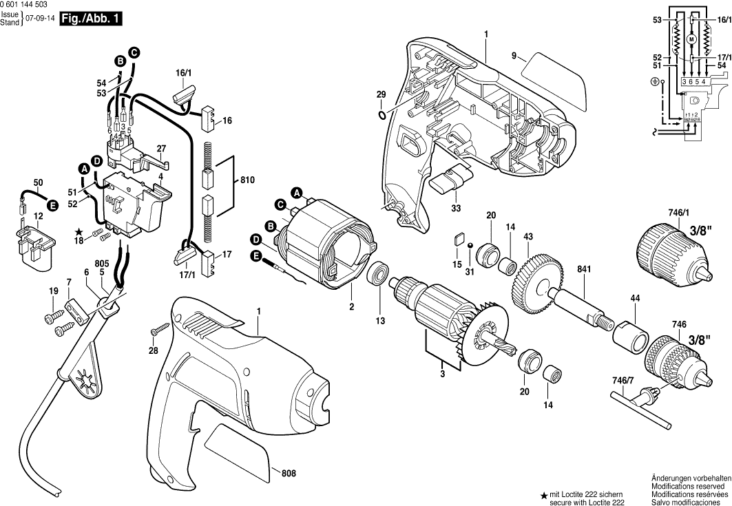 Spare parts list of model Bosch 0601144508 ( GBM450RE )