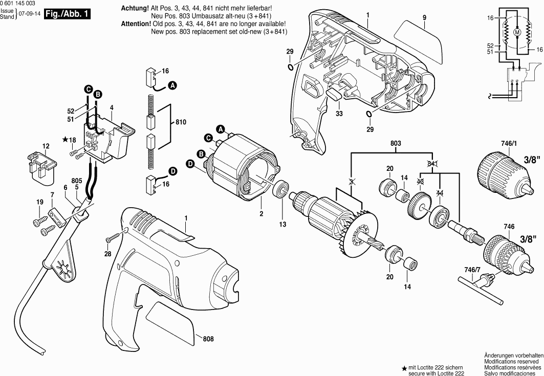Spare parts list of model Bosch 0601145003 ( GBM6 )