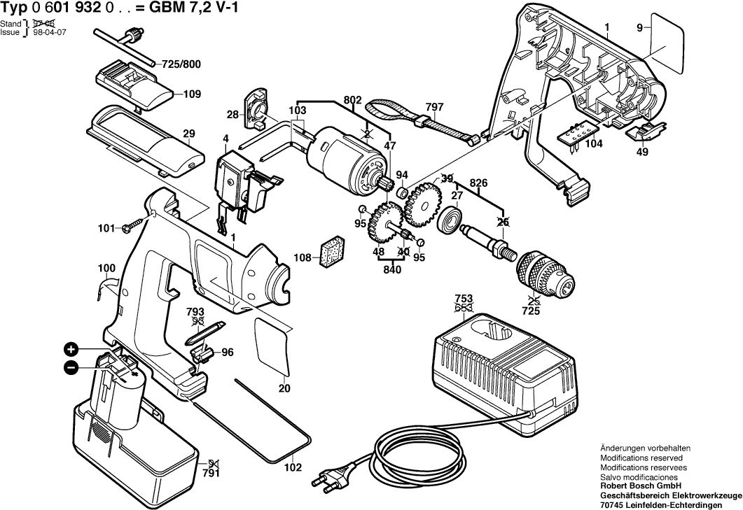 Spare parts list of model Bosch 0601932060 ( GBM7,2V-1 )