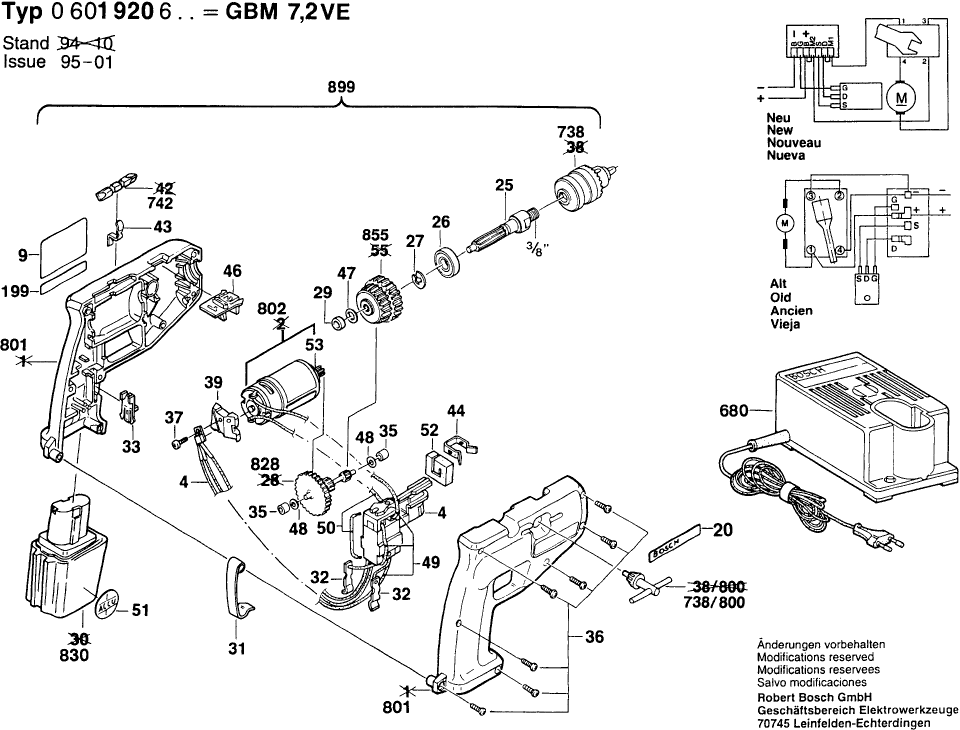 Spare parts list of model Bosch 0601920666 ( GBM7,2VE )