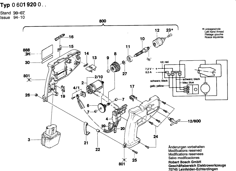 Technical drawing of model Bosch 0601920003 ( GBM7,2VRL )