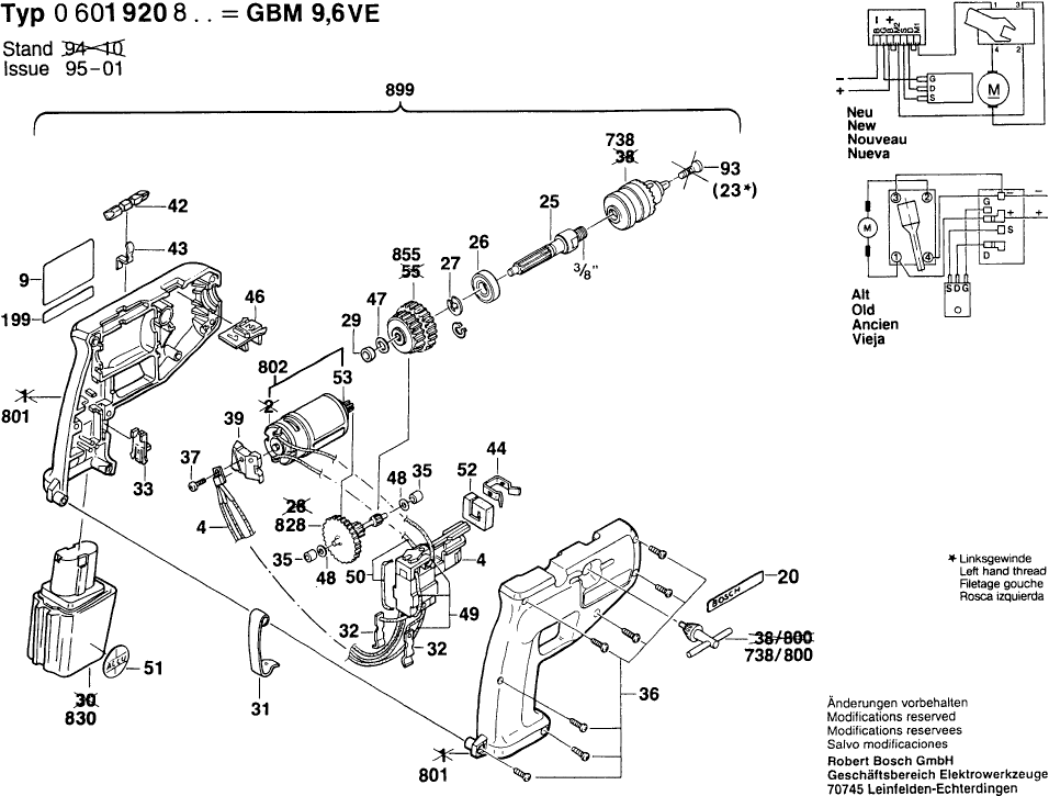 Spare parts list of model Bosch 0601920803 ( GBM9,6VE )