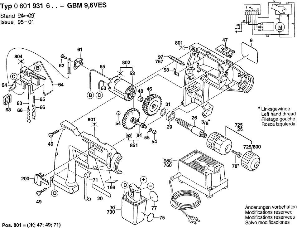 Spare parts list of model Bosch 0601931627 ( GBM9,6VES )