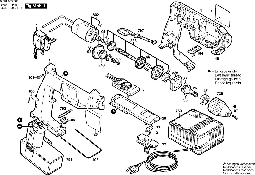 Spare parts list of model Bosch 0601933389 ( GBM9,6VSP-3 )