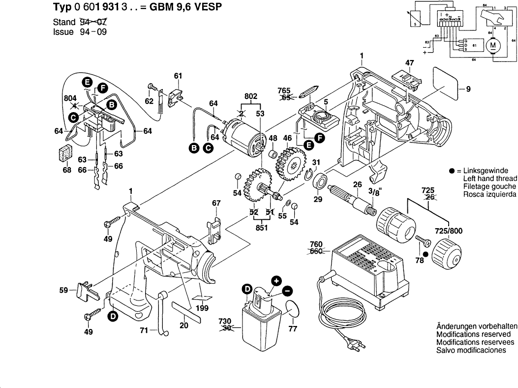Spare parts list of model Bosch 0601931366 ( GBM9,6VVESP )