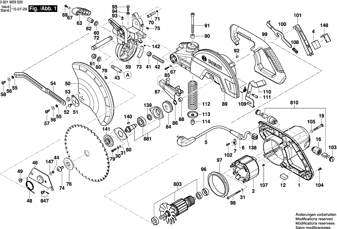 Spare parts list of model Bosch 3601M29020 ( GCM10MX )