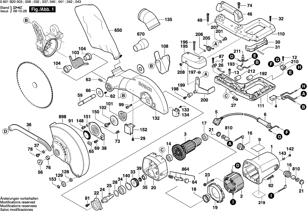 Spare parts list of model Bosch 0601B20003 ( GCM10 )