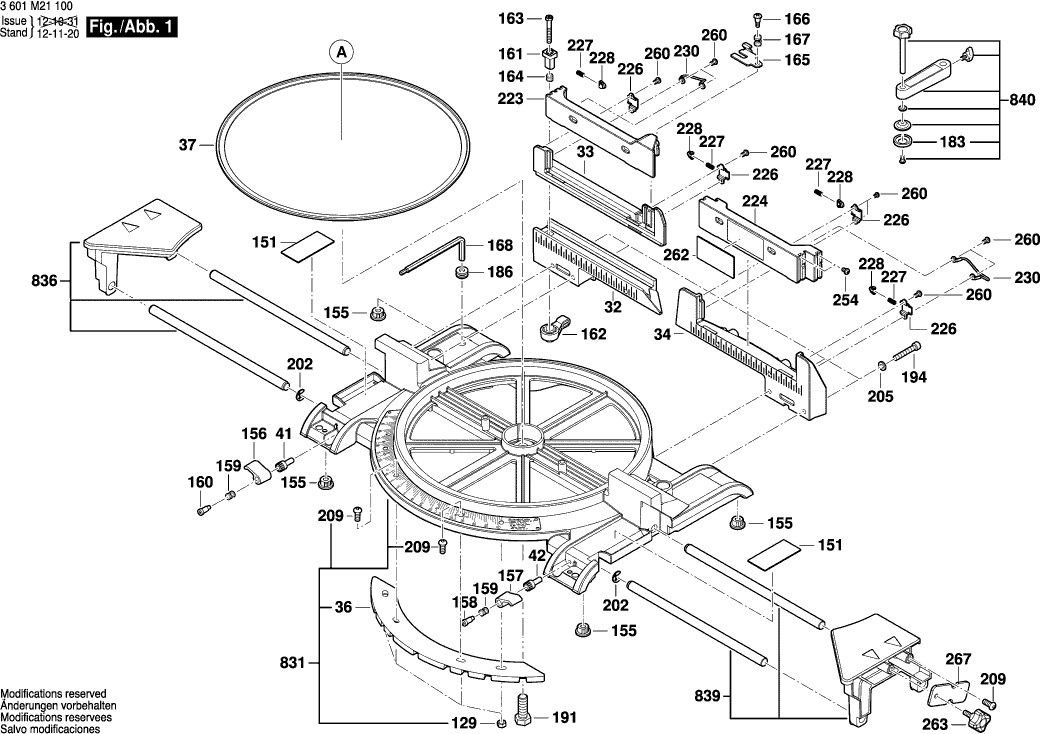 Technical drawing of model Bosch 3601M21100 ( GCM12JL )