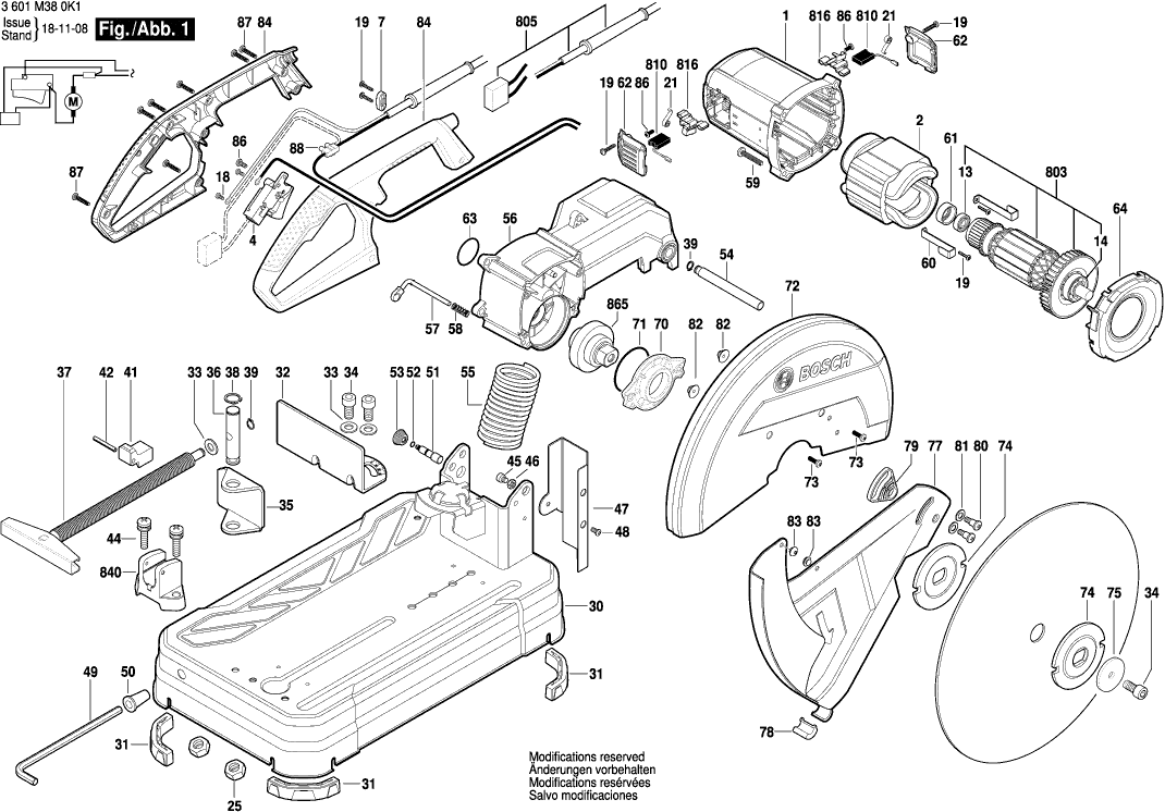 Spare parts list of model Bosch 3601M380K1 ( GCO200 )