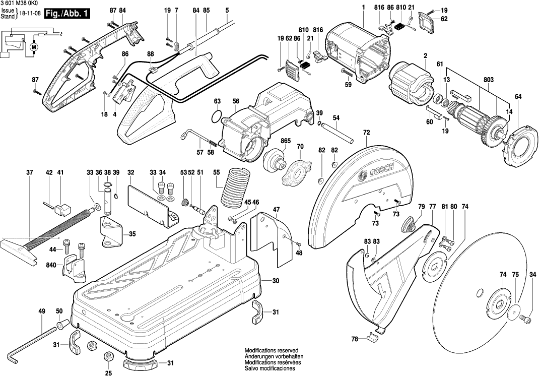 Spare parts list of model Bosch 3601M380P0 ( GCO240 )