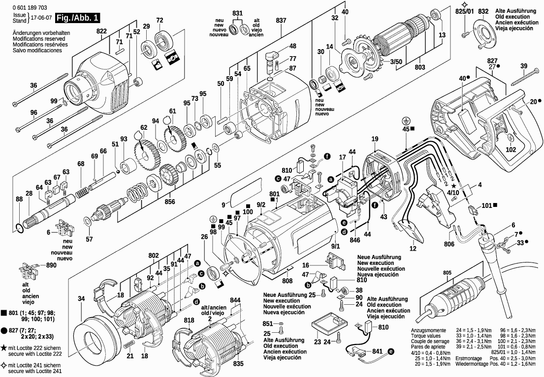 Spare parts list of model Bosch 0601189703 ( GDB1600WE )